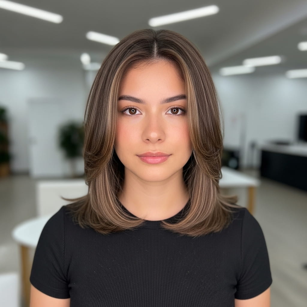 Bronze tones bring warmth that keeps your hairstyle looking fresh and lively. This highlight technique blends smoothly, which avoids harsh lines. In my experience, soft waves help showcase the color variation best. Furthermore, the added dimension improves overall texture visually. That improvement makes hair look thicker. Therefore, if you want a hairstyle that feels bright, modern, and easy to maintain, these bronze highlights offer a glowing and stylish finish.