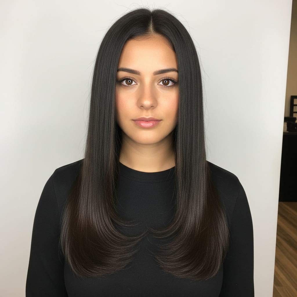 Midnight tones give your hair a clean and defined silhouette that lasts all day. This shade works especially well with straight, glossy finishes. In my experience, a shine serum helps maintain the reflective effect beautifully. Additionally, the color holds its depth longer than lighter tones. That durability reduces frequent salon visits. Therefore, if you want a hairstyle that feels bold, modern, and effortlessly polished, this glossy midnight brunette offers a striking and elegant result.
