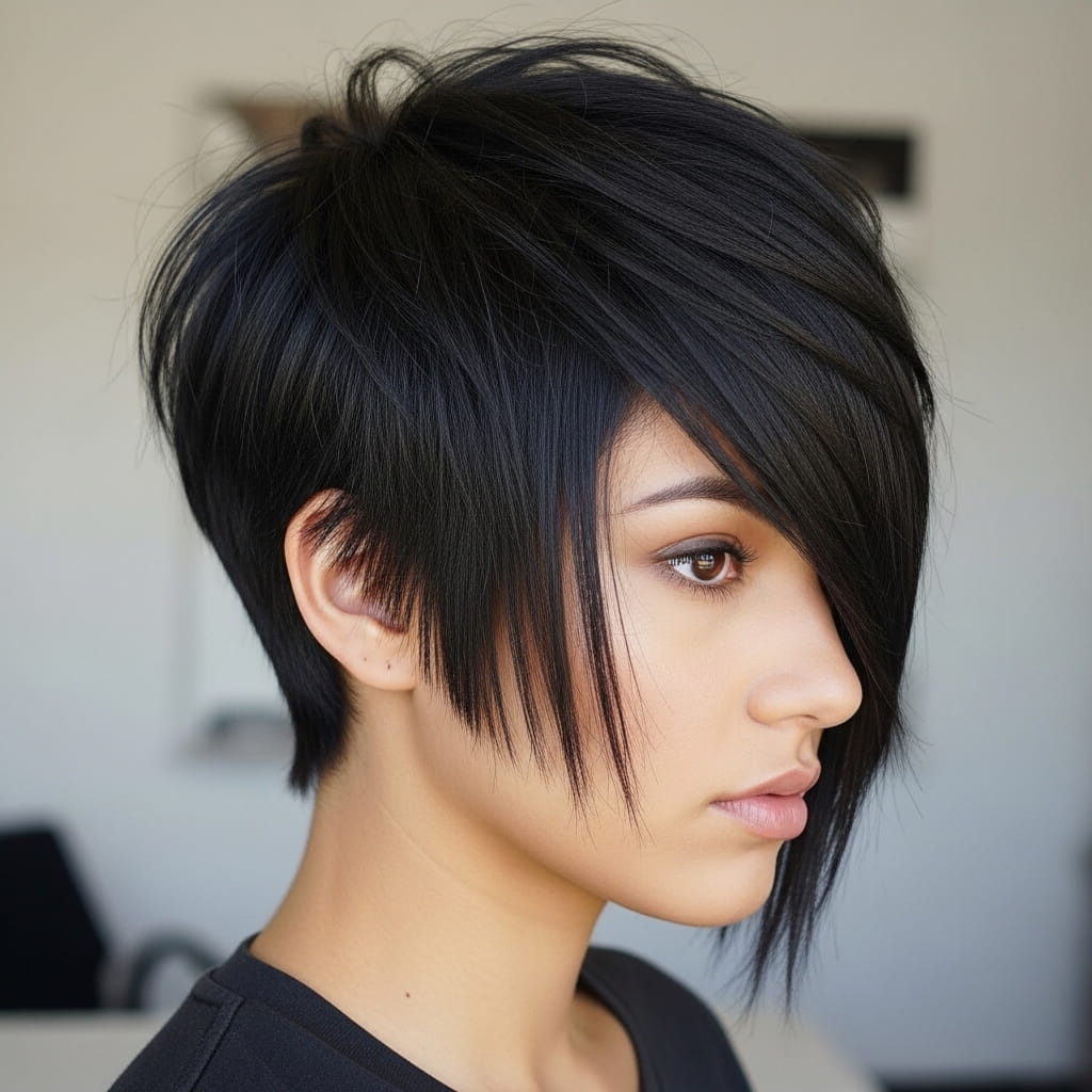 Asymmetrical styles bring strong visual interest that transforms your overall look quickly. This cut works best with textured styling for added depth. In my experience, using a matte styling product enhances the layers without stiffness. Additionally, the uneven lengths create versatility in styling. That flexibility keeps the look fresh. Therefore, if you want a hairstyle that feels edgy, flattering, and modern, this asymmetrical pixie cut delivers a standout result.