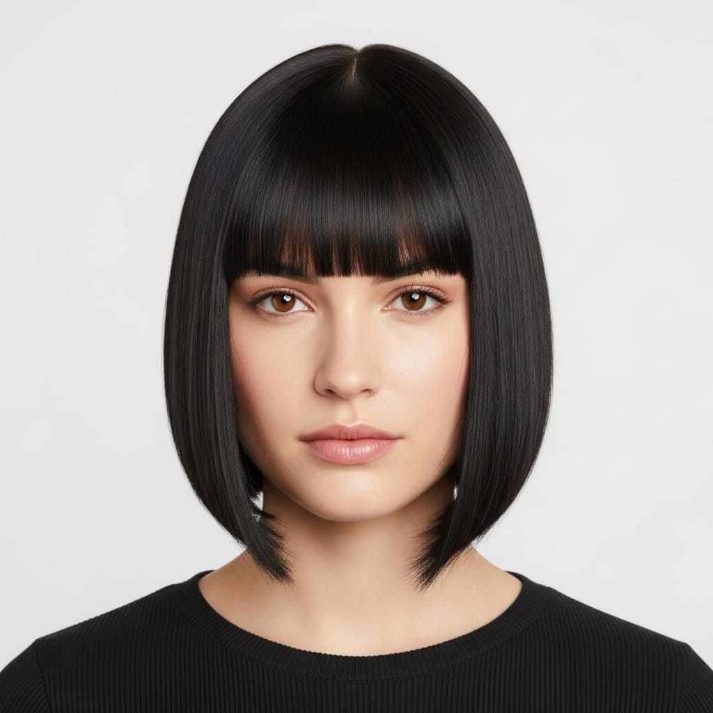 Blunt cuts can work, but softer edges or angled versions are more flattering. They help reduce the appearance of width.