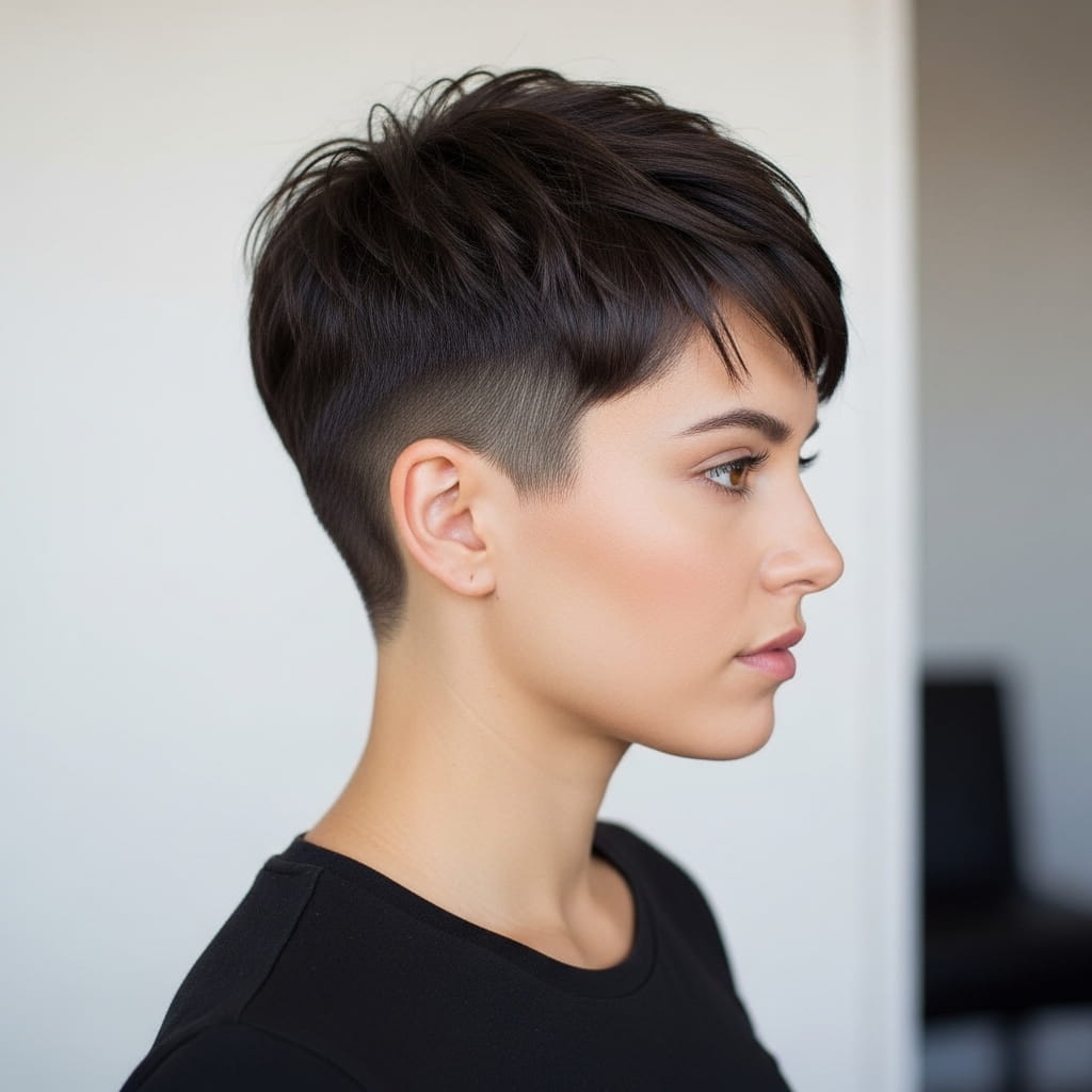 Tapered styles bring a sleek finish that keeps your look sharp throughout the day. This haircut works well with minimal styling effort. In my experience, a small amount of styling product enhances the top layers easily. Additionally, the short sides reduce maintenance time significantly. That practicality makes it ideal for everyday routines. Therefore, if you want a hairstyle that feels sleek, modern, and flattering, this tapered pixie cut delivers a confident and stylish result.